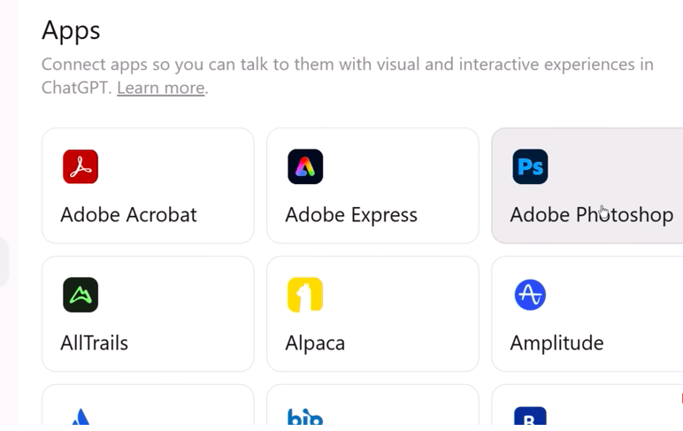 Les abonnés – même ceux disposant d’un compte gratuit – peuvent accéder à ces intégrations depuis les paramètres de leur compte ChatGPT. Dans l’onglet « Apps and Connectors », trois nouvelles applications signées Adobe sont désormais disponibles. Après avoir cliqué sur « Connect » et accepté les conditions d’utilisation, l’outil devient immédiatement fonctionnel.